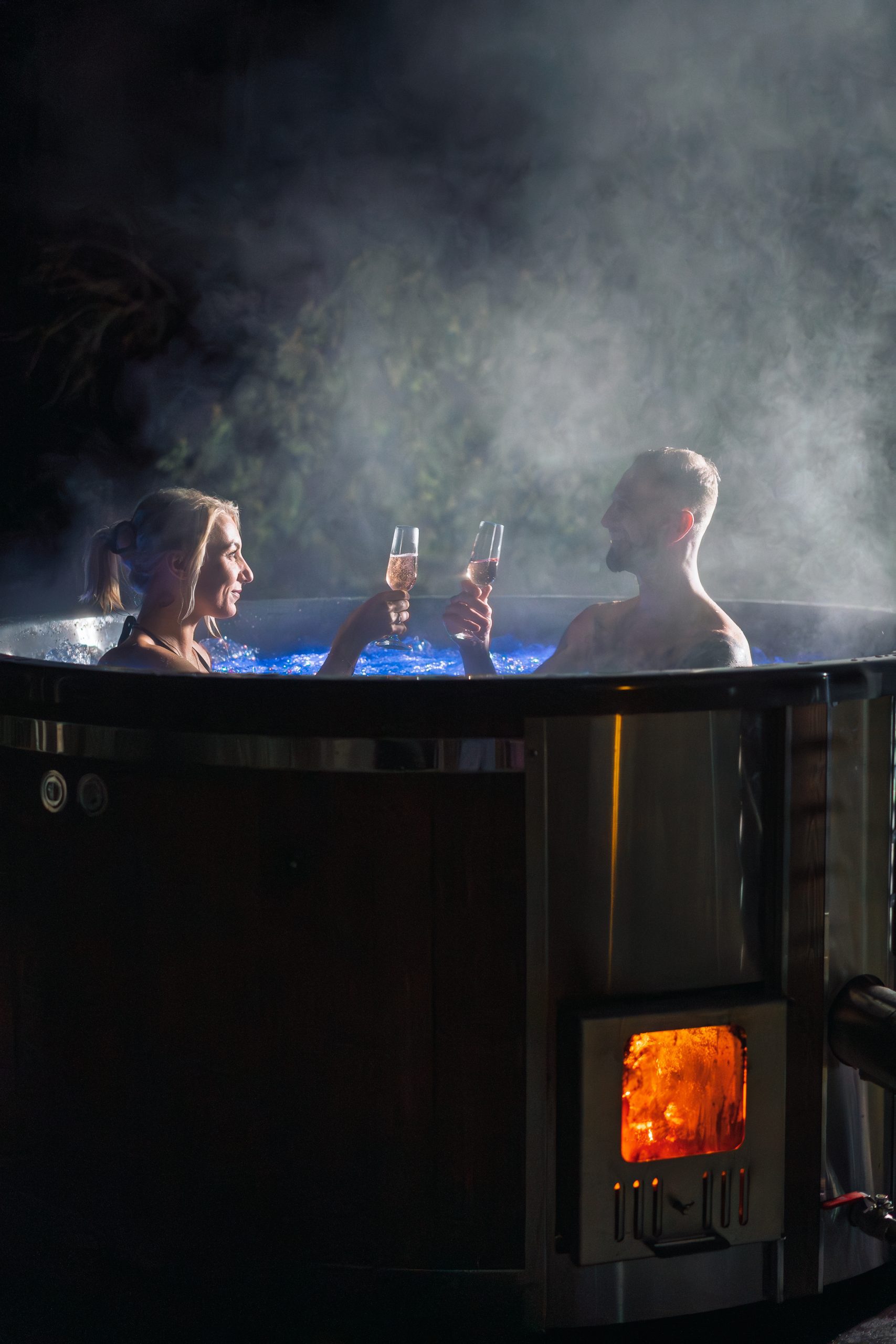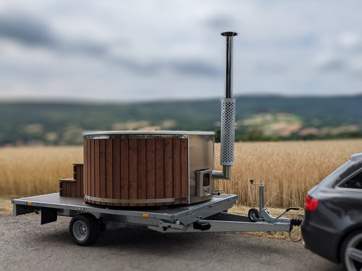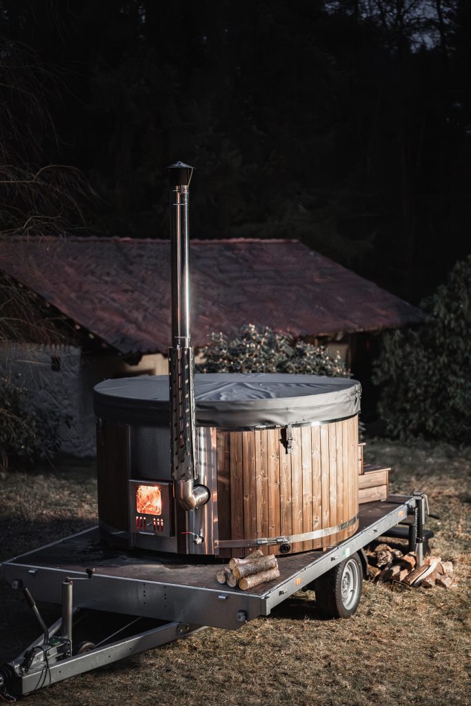 Der mobile-Whirlpool ist an jedem Ort einsatzbereit. Die Anlieferung erfolgt ohne Wasser, inklusive einer Kiste Holz. Der Ofen wird mit Holz beheizt, für das SPA-System benötigen Sie einen Stromanschluss (230V).